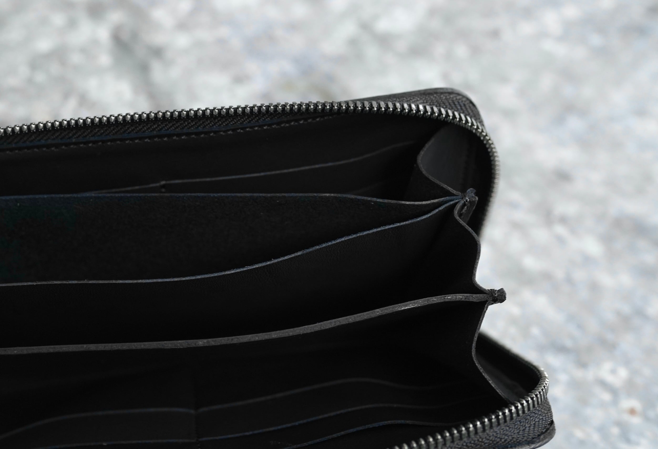 こちらのロングタイプのお財布は内装の小銭入れのファスナーを無くし、よりスムーズに小銭を取り出し易い仕様に仕上げました。お札入れのマチをジャバラにしてありますので収納しやすく、枚数によって調整がききます。